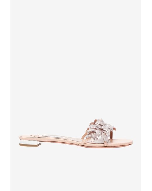 Aquazzura Galactic Flower Slides In Leather in Pink Lyst