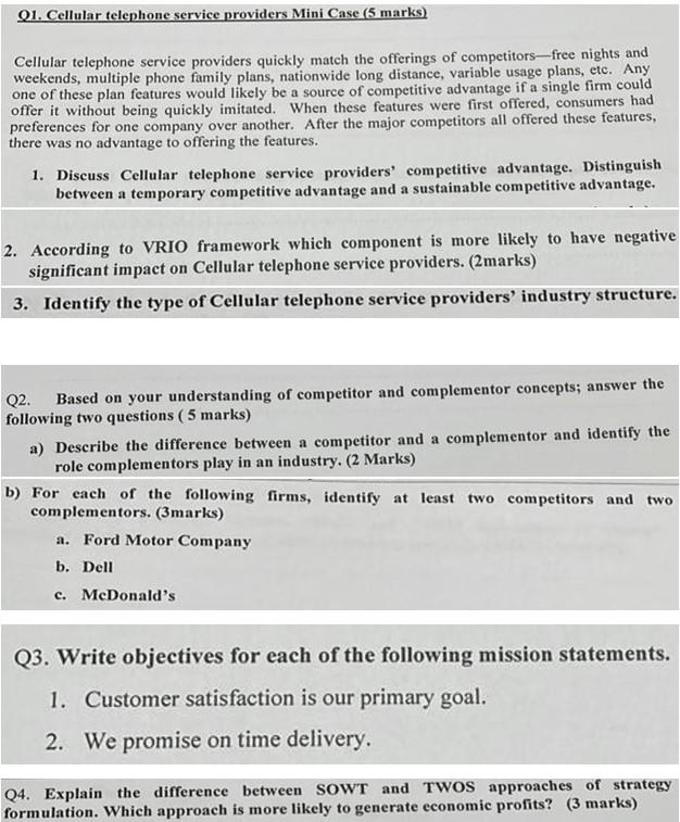 Solved Q1. Cellular telephone service providers Mini Case (