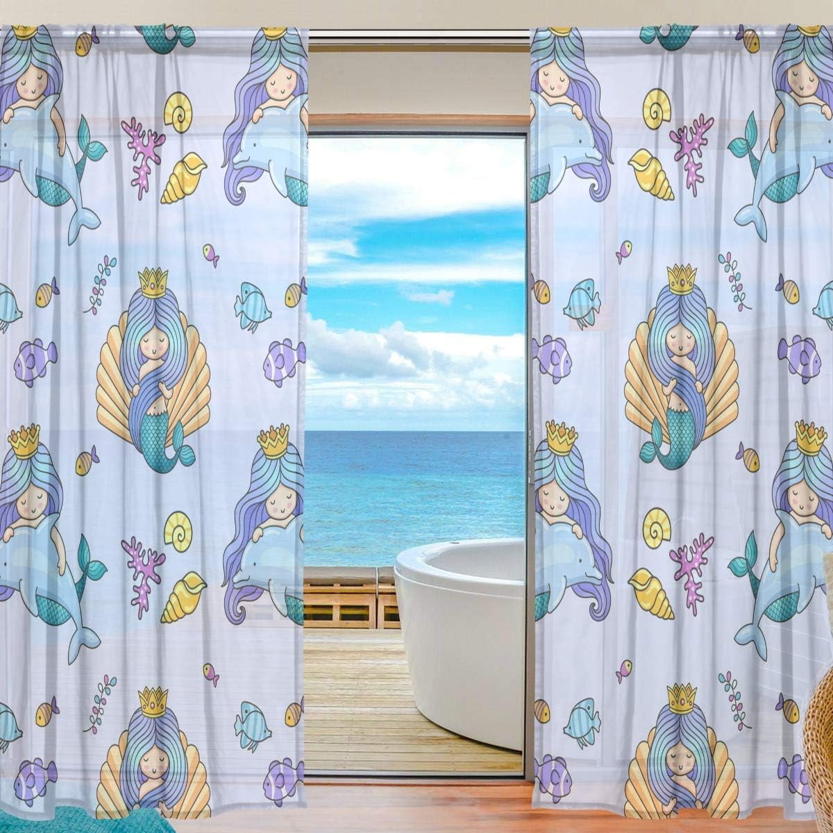 Dreamtimes Mermaid with Dolphin and Seashell Semi Sheer Curtains, 78