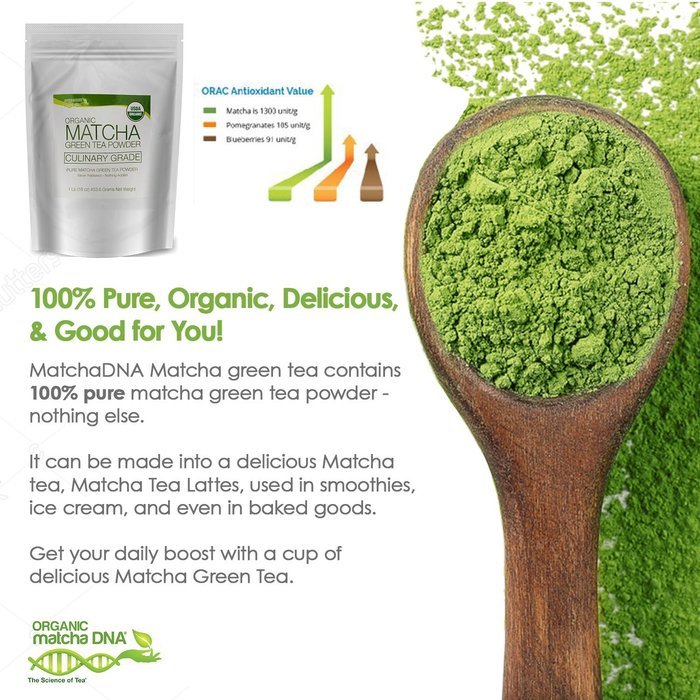 MatchaDNA Organic Culinary Matcha Green Tea Powder 16 oz N17 free image
