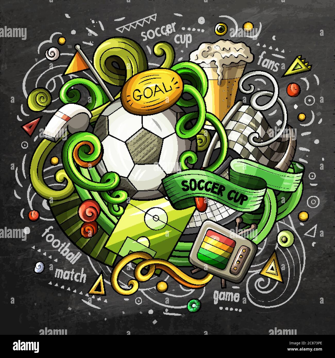 Soccer cartoon vector doodle illustration. Chalkboard design Stock