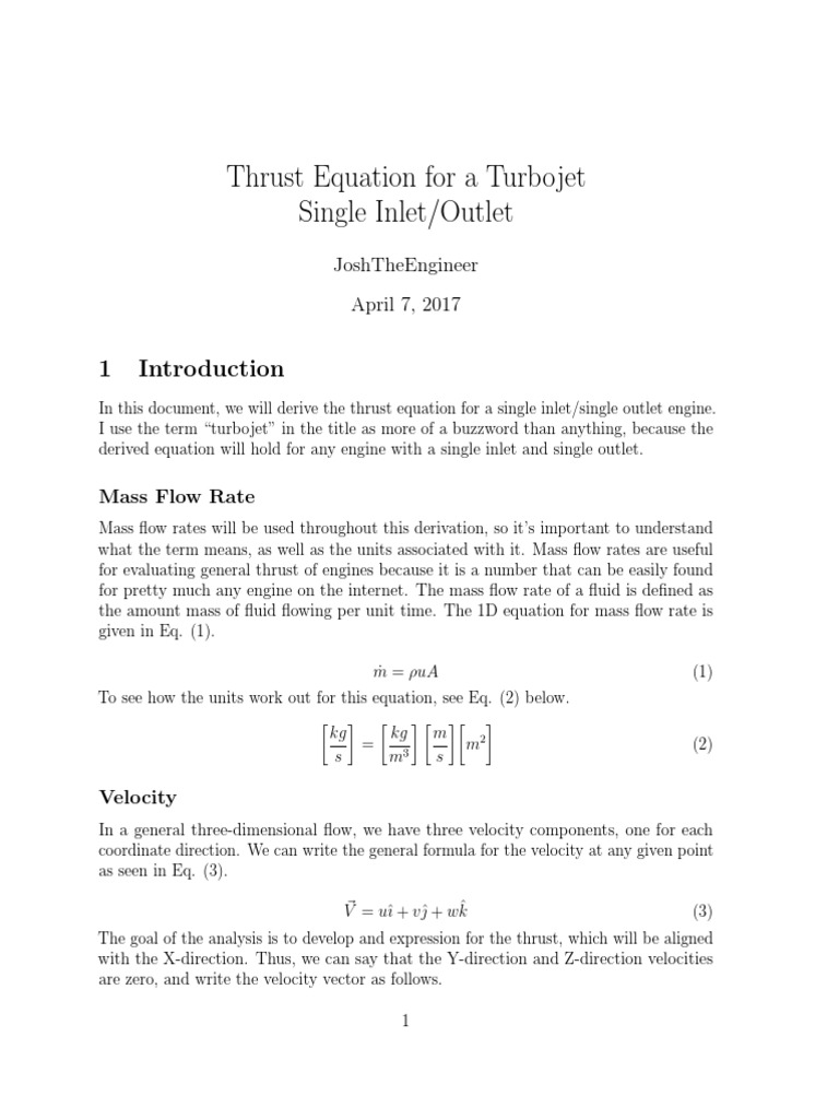 Thrust Equation Turbojet2 PDF Thrust Fluid Dynamics