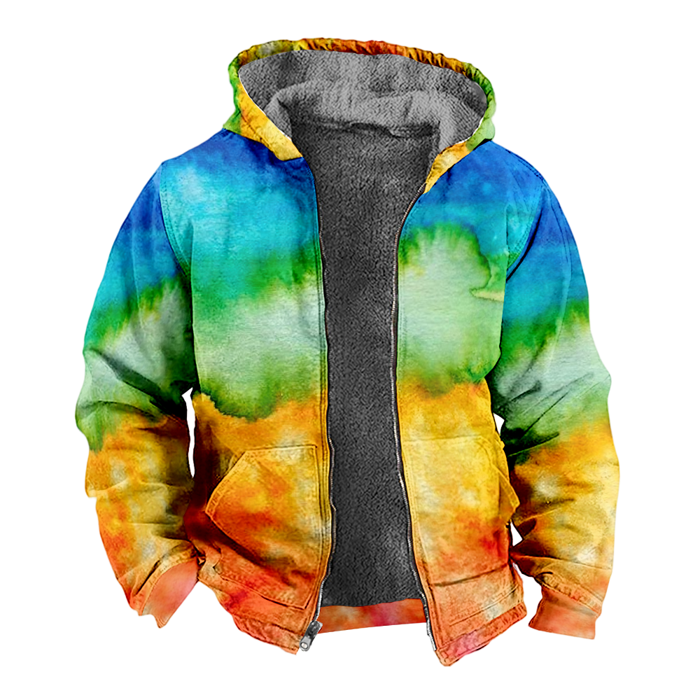 Mens Fleece JacketColorful Splash Graphics Full Zip Hoodie Jacket for Men,Winter Warm Cozy