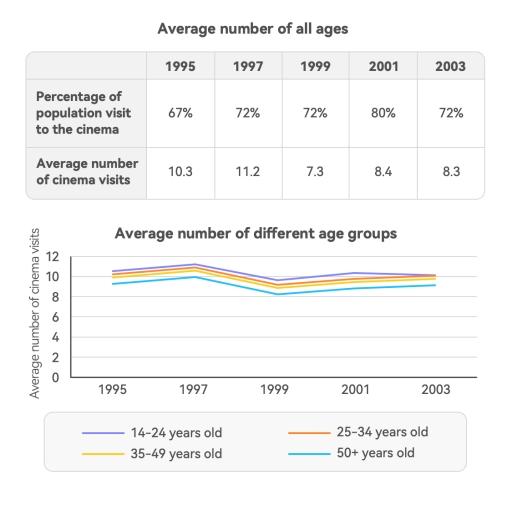 The table and graph below show information about cinema visit is in