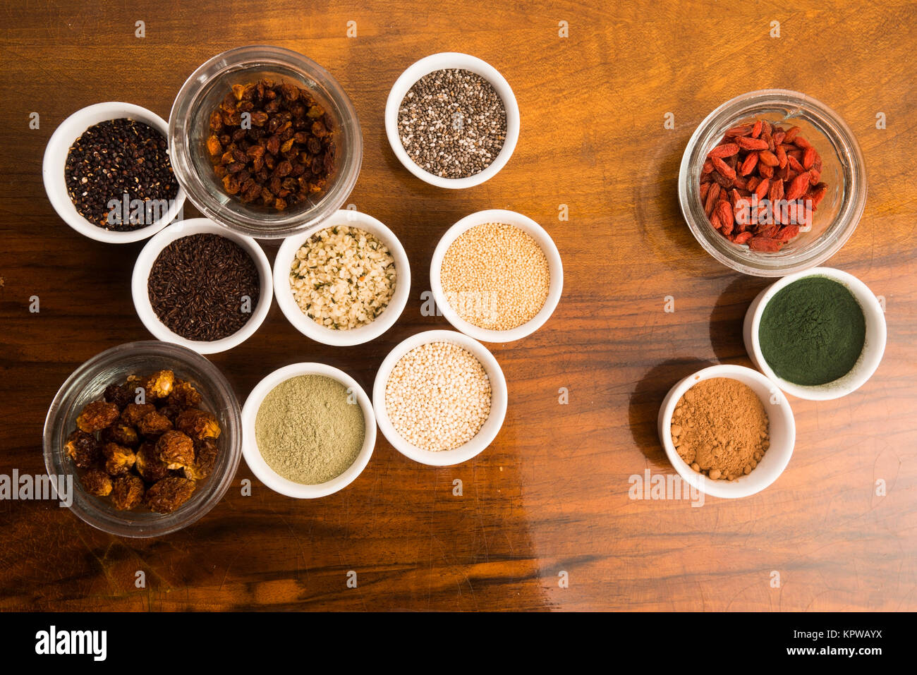 bowls of various superfoods Stock Photo Alamy