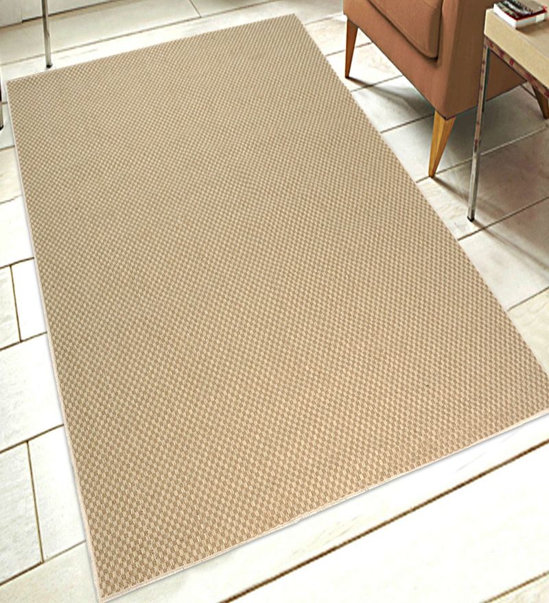 Buy Beige Jute & Cotton Checkered 5 x 7 Feet Hand Woven Carpet by Saral