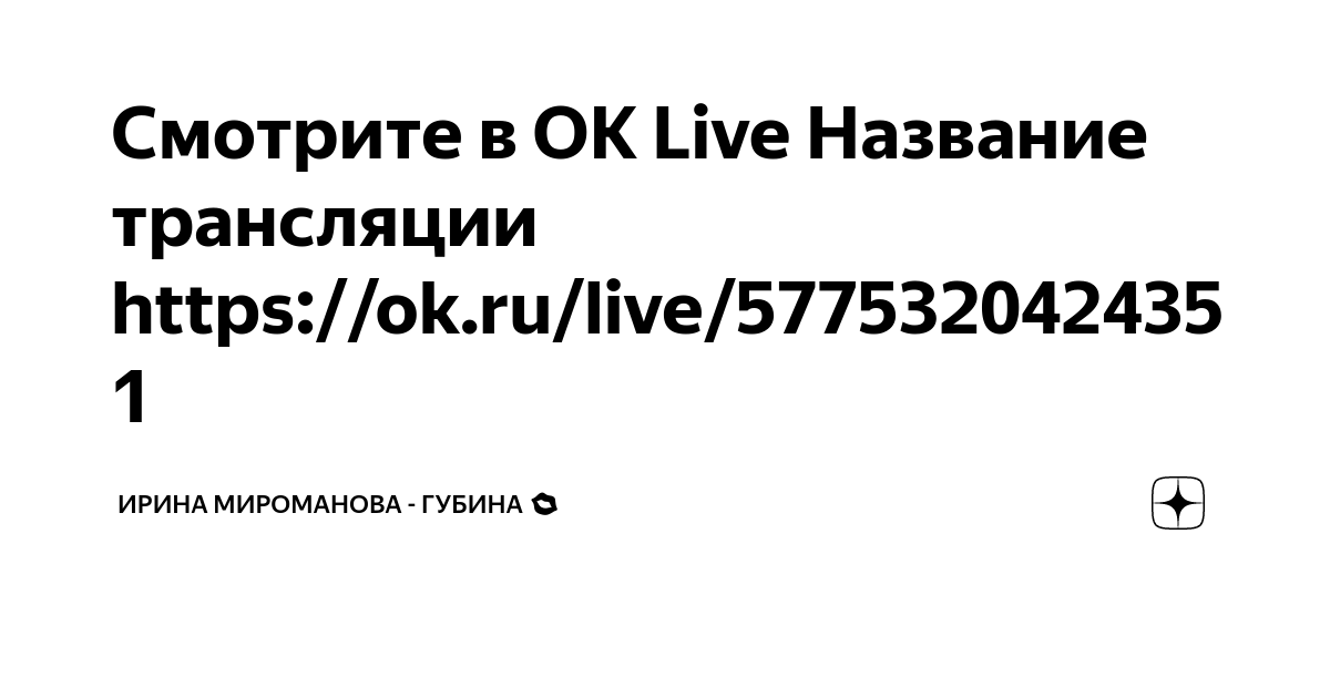 Смотрите в OK Live Название трансляции https//ok.ru/live/5775320424351