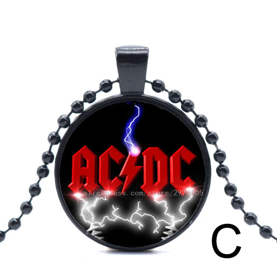 1pc AC DC Silver Pendant Necklace Fashion Jewelry lightning Glass Cabochon Choker Rock Theme