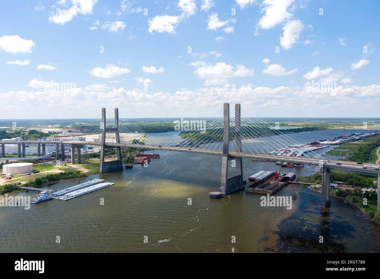 Aerial view of the Cochrane Africatown bridge on the Mobile River in