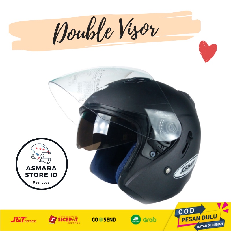 Jual HELM PRIA WANITA SNI HALF FACE KEREN DOUBLE VISOR BAGUS GMT SOLID