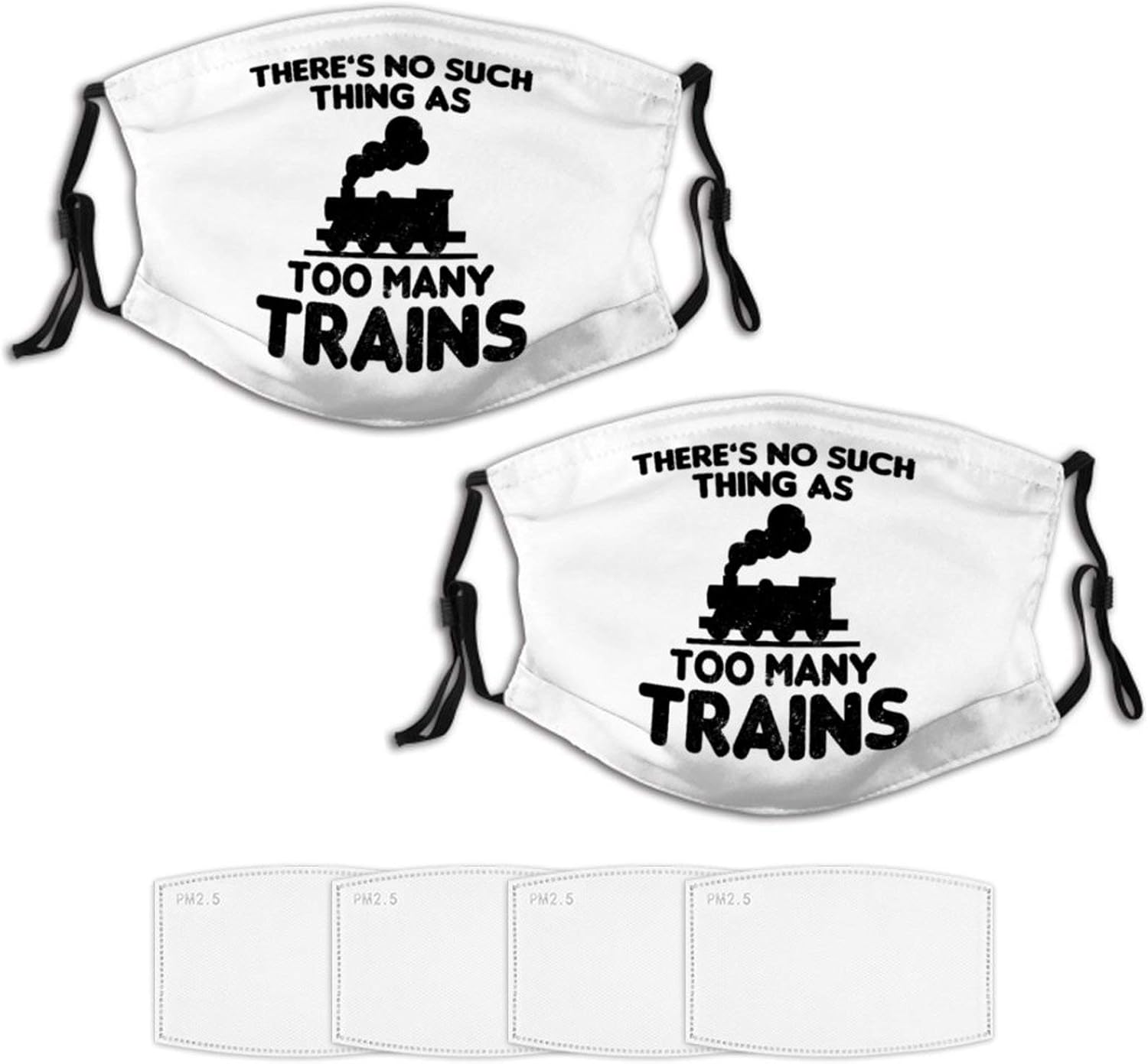 Trains Railroad Love 2 Piece Face Masks Set Plus 4 Replaceable Air Filters Washable Reusable