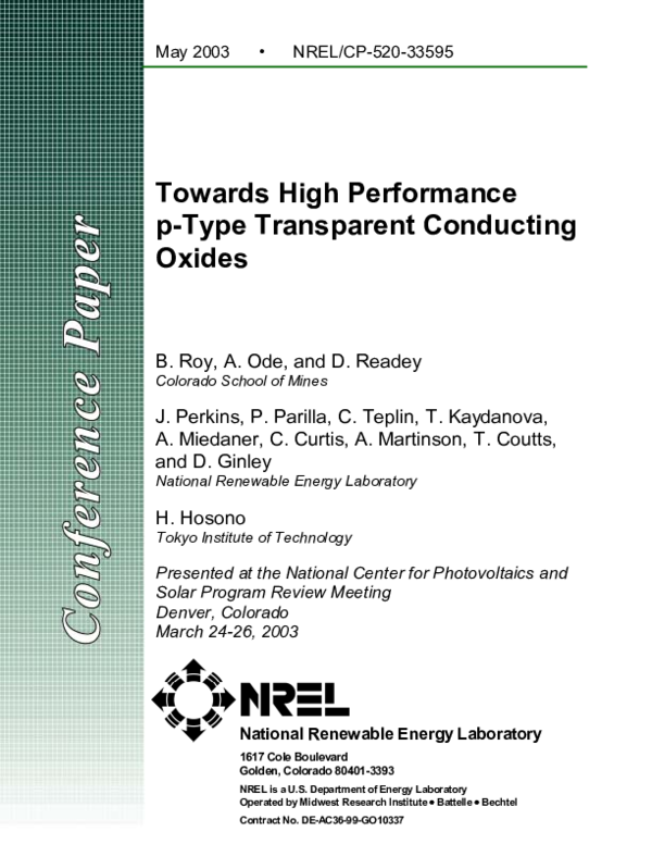 (PDF) Towards High Performance pType Transparent Conducting Oxides Brandon Fletcher