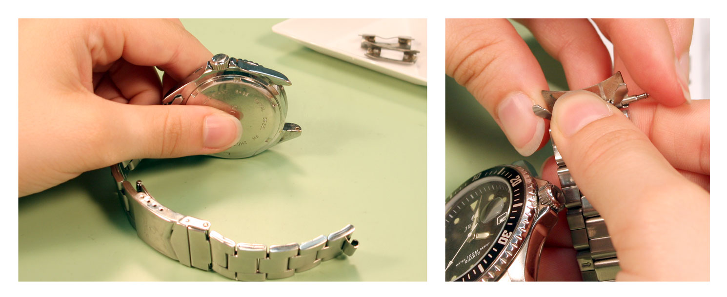 How to Remove Watch Band Links Esslinger Watchmaker Supplies Blog How To Change A Metal Watch Band With End Pieces Changing a watch strap is a process that involves removing the old strap from the watch case and replacing it with a replacement strap. Insert one end (bottom end) of the spring bar into the pinhole of the case lug. Learn more about changing watch bands: Learn more about changing watch bands here: This is advantageous if your current. If. How To Change A Metal Watch Band With End Pieces.