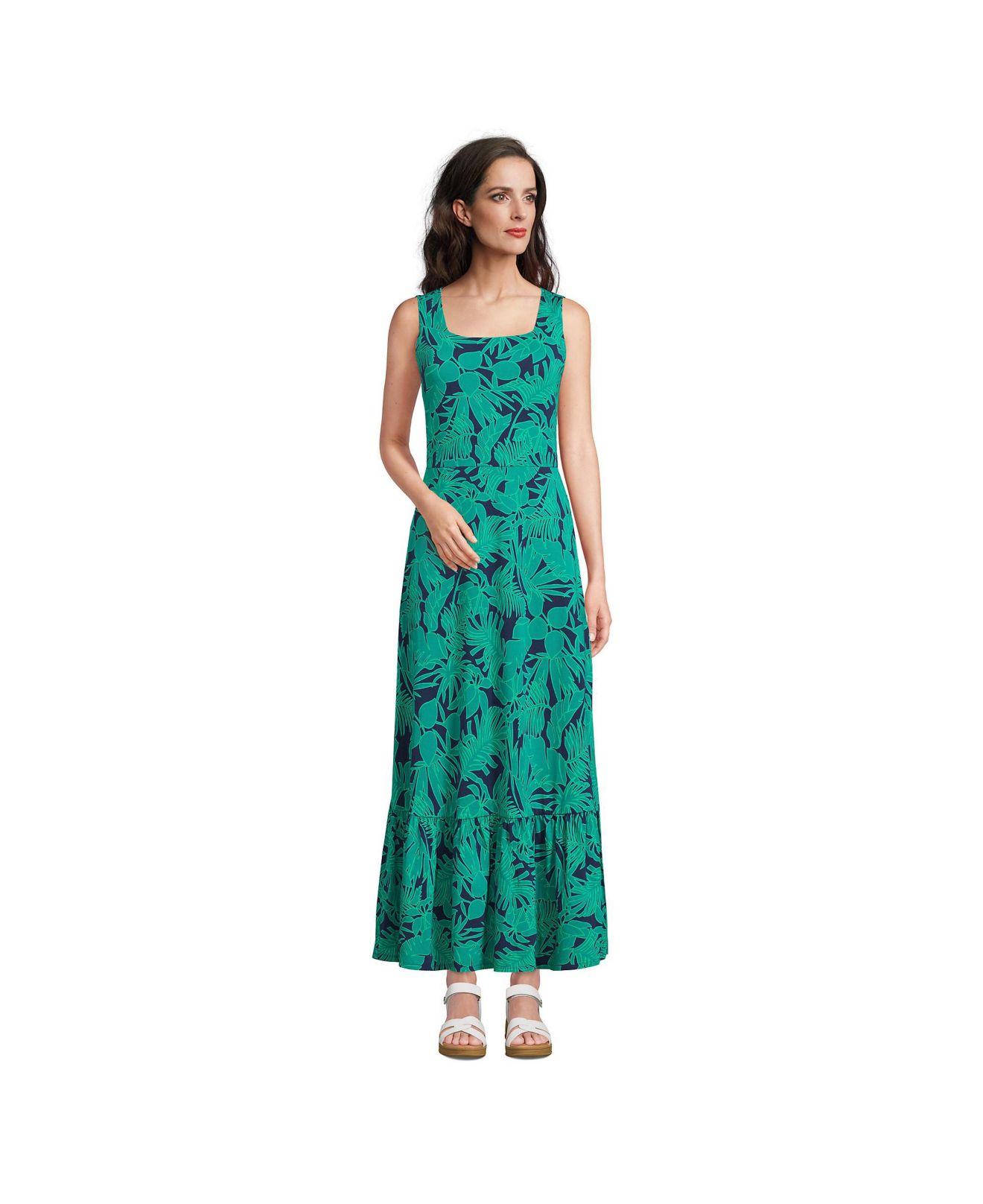 Lands' End Cotton Modal Square Neck Tiered Maxi Dress in Blue Lyst