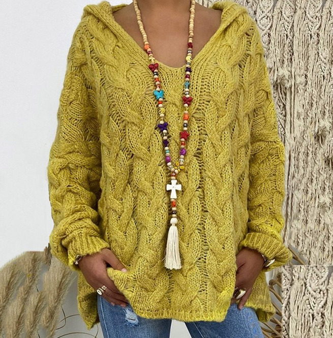Vintage Women's & Acrylic Loosefit Hooded Knit Sweater RebelsMarket