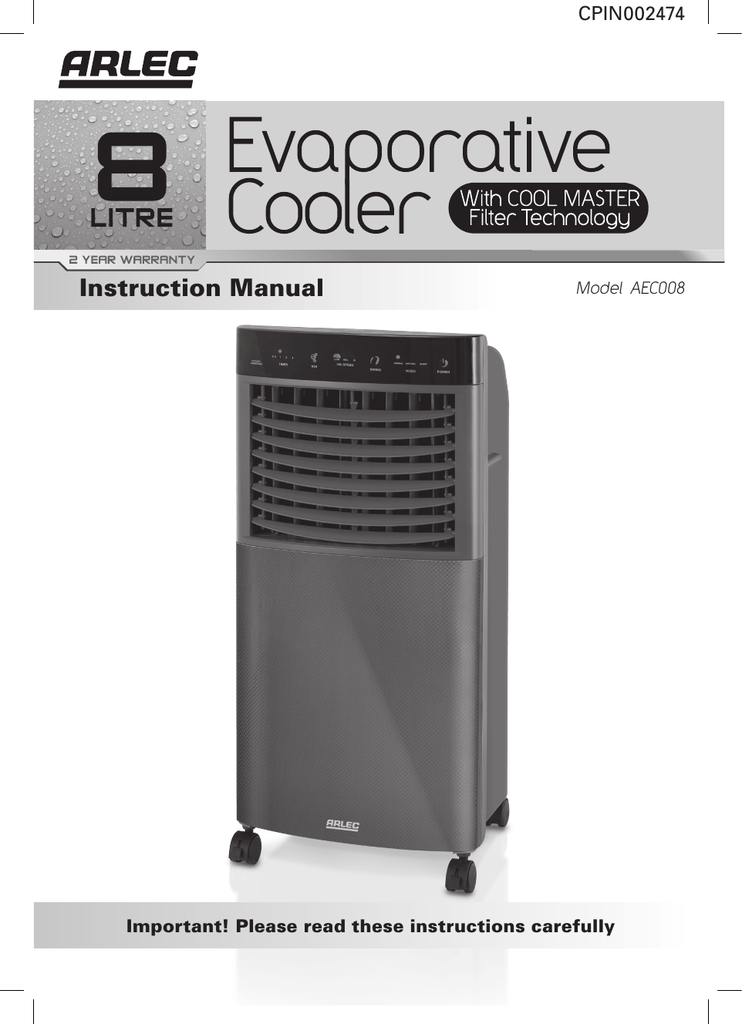 Arlec Electric Mobile Evaporative Cooler. Model AEC008. Not Tested Arlec Evaporative Cooler Instructions • keep blinds/curtains closed during the sunniest. • do not locate the evaporative cooler where furniture or other objects can obstruct the air flow. The cooler easily rolls from room to room for use anywhere in the home or office. Pa0802gb air conditioner pdf manual download. Please read these instructions carefully. To adjust vertical airflow, manually move the long air. Arlec Evaporative Cooler Instructions.