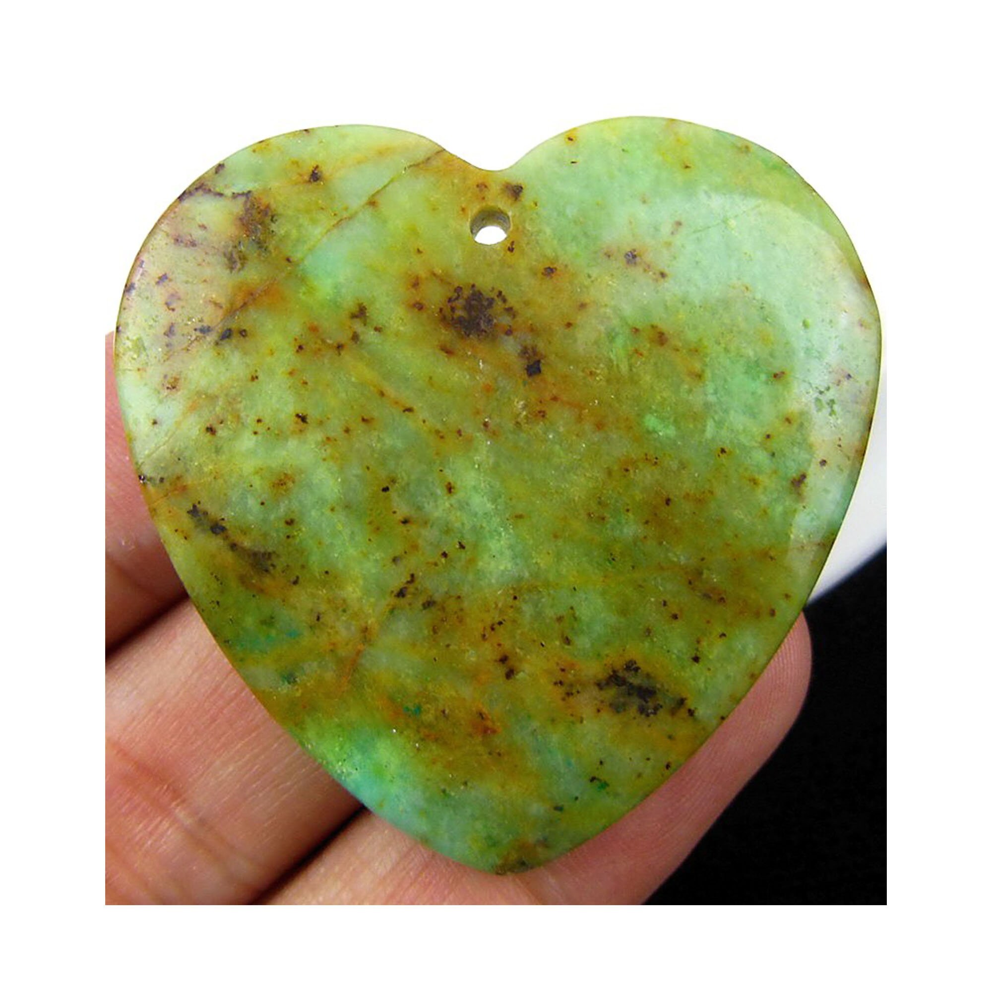 Green Australian Jade Heart Gemstone Pendant Focal Bead 44x6mm D22676