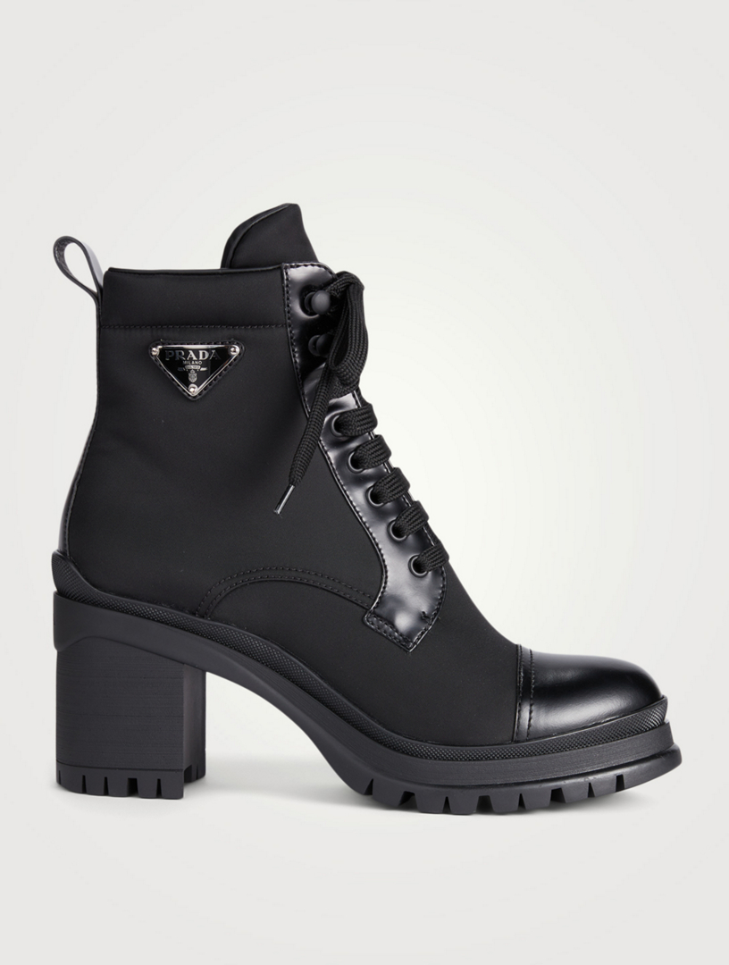 PRADA ReNylon And Leather LaceUp Heeled Combat Boots Holt Renfrew