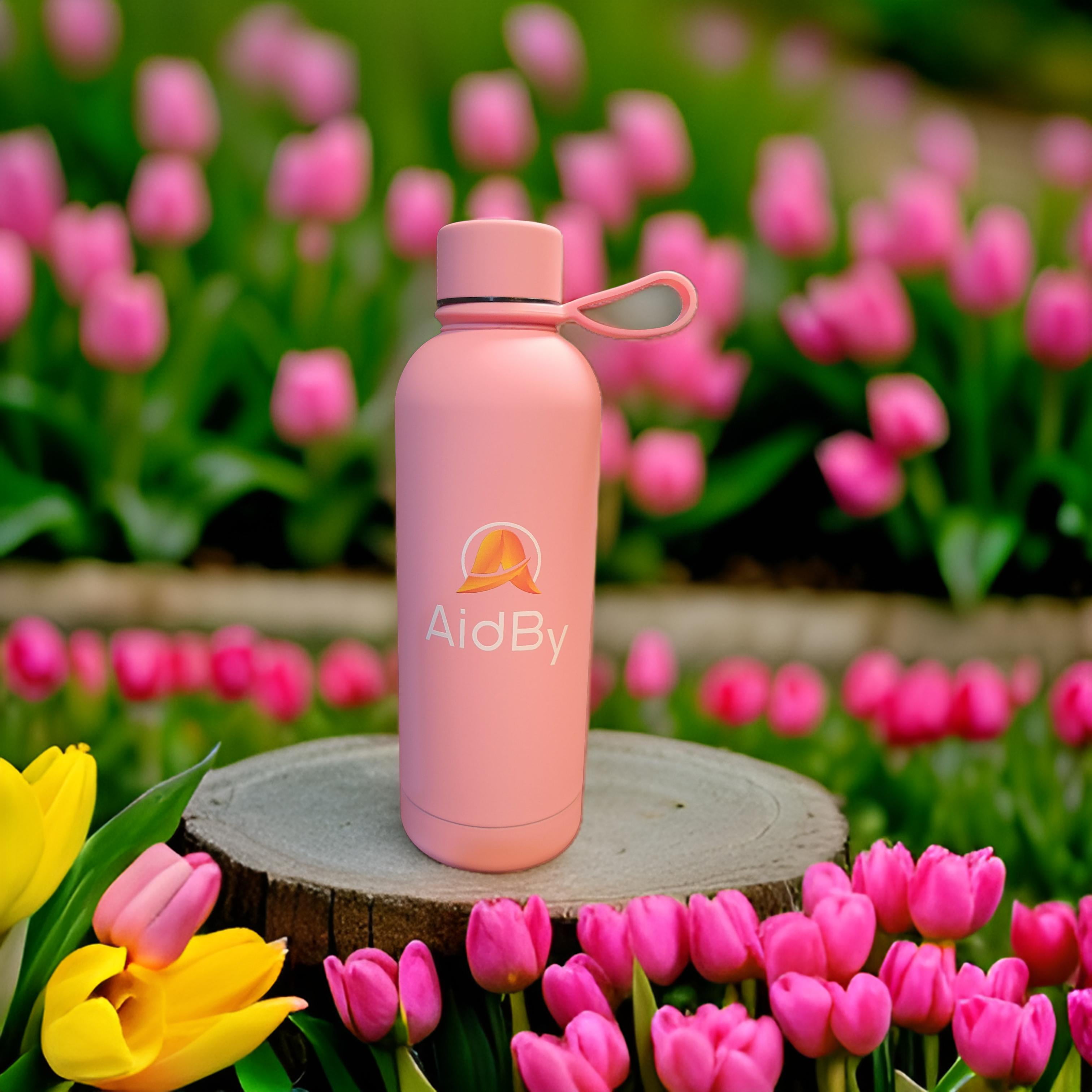 Water Bottle 500 ml with Strap PINK Stainless steel, Double walled