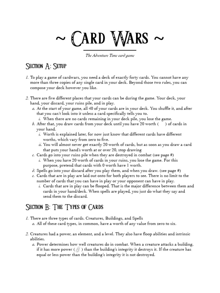Card Wars Rules PDF Playing Cards Sports