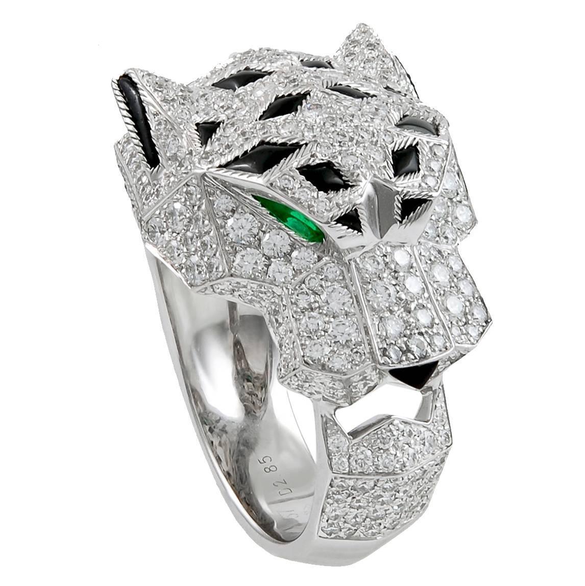 Cartier Panthère Diamond White Gold Openwork Panther Head Ring at Panther Jewelry Cartier the emblematic panther has embodied cartier’s creation ever since its first appearance on a watch with panther spots in 1914. Discover the full panthère de cartier collection on the official cartier® online. yellow gold, onyx, emeralds, diamonds. the panther is cartier’s iconic animal. from brooches to bangles, the cartier panthère is a classic from a master. Panther Jewelry Cartier.
