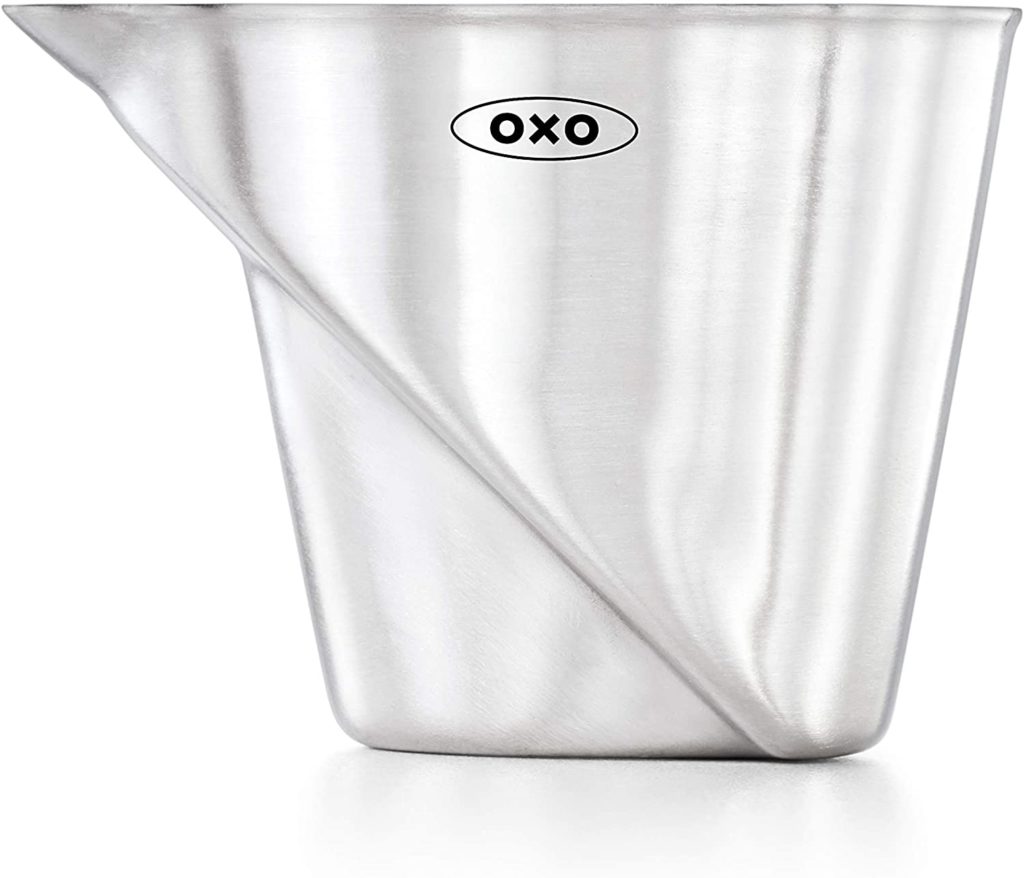 OXO Steel Angled Measuring Jigger Nimble Bar Co Bar Jigger Oxo Oxo stahl, gewinkelt messung jigger a edelstahl. With a patented angled surface, the oxo angled measuring jigger allows you to see measurement markings while looking straight down into it, so you don't have to hold it up to eye level or bend. With a patented angled surface, the angled measuring jigger allows you to see measurement markings while looking straight.. Bar Jigger Oxo.