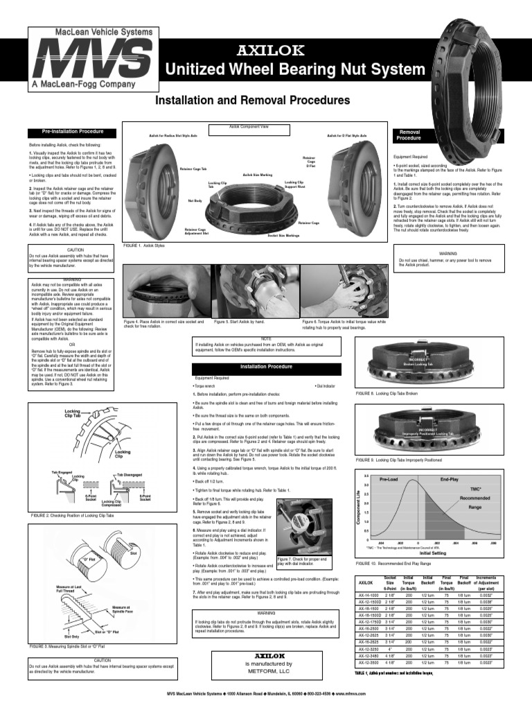 Axilok MacleanFogg CS Axilok Axle Nut Torque Specs Use a conventional wheel nut retaining if installing axilok on vehicles purchased from an oem, with axilok as original equipment, follow the oem's. Axilok can be applied on steer, drive,. This slot engages a locking tab on the. Unitized part consisting of nut body (2), two. Axle nut sets the preload for the bearing and keeps the bearing from separating. Axilok Axle Nut Torque Specs.