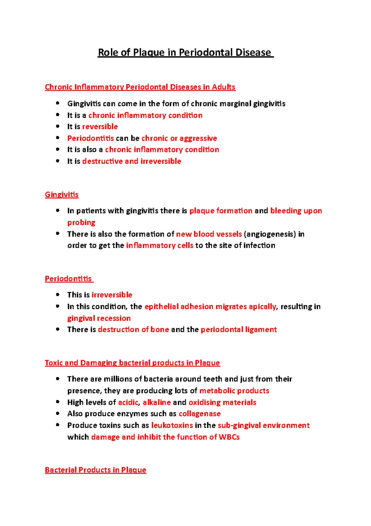 Role of Plaque in Periodontal Disease gingivalis as a pathogen It is