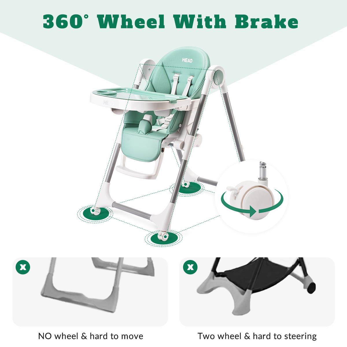 HEAO Baby High Chair with 4 Wheels Height Reclining Footrest Adjustable