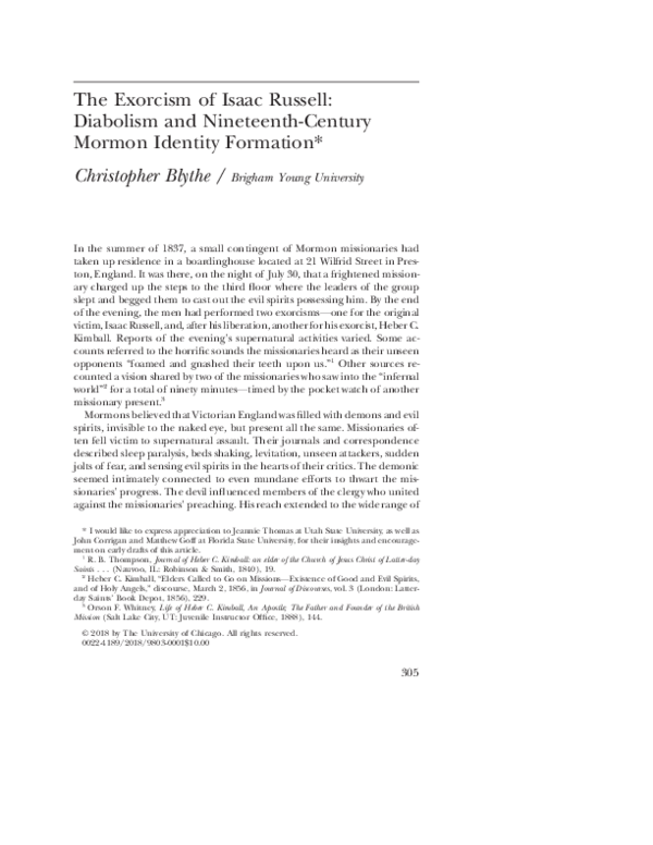 (PDF) The Exorcism of Isaac Russell Diabolism and Mormon Identity Formation