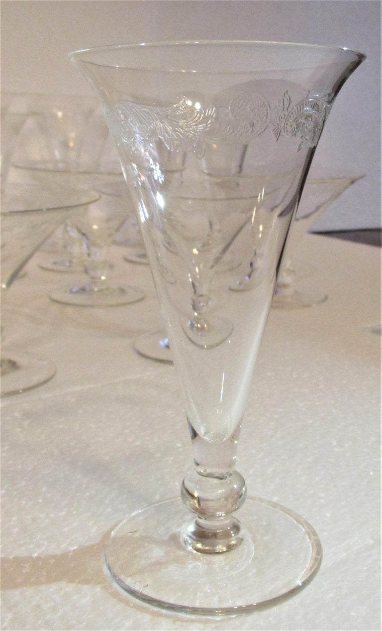 Italian, Hand Blown Finely Etched 1940s Wine Glasses For Sale at 1stdibs