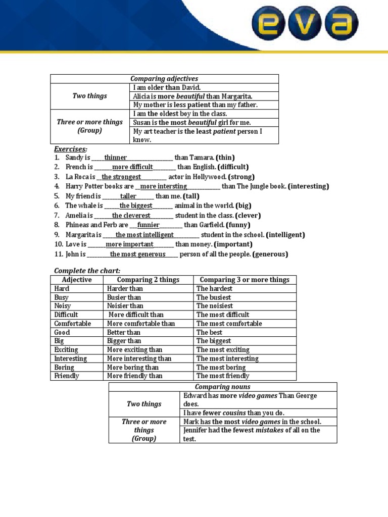 Exercises Comparing Adjectives Two Things PDF Solar System Science