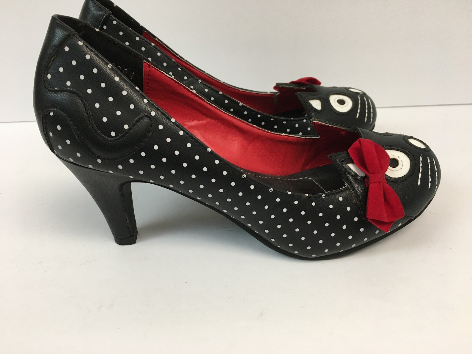 Polka Dot Kitty Pumps/Black Cat Heels/ Size 7 TUK shoes Etsy