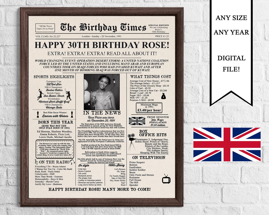 Personalized Newspaper Birthday Poster With Photo Printable Etsy UK Newspaper Birthday Gift Uk These can be further personalized with a unique message, and more, on the certificate of authenticity. birthday newspapers uk newspapers make great birthday gifts no matter how old or young your birthday guy or girl is. personalised ultimate birthday deluxe newspaper book gift | uk headlines from the day you were born & every year since |. . Newspaper Birthday Gift Uk.