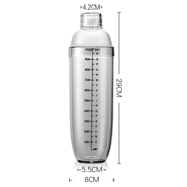 500ml/700ml/1000ml Transparent Cocktail Shaker Drink Hand Shake