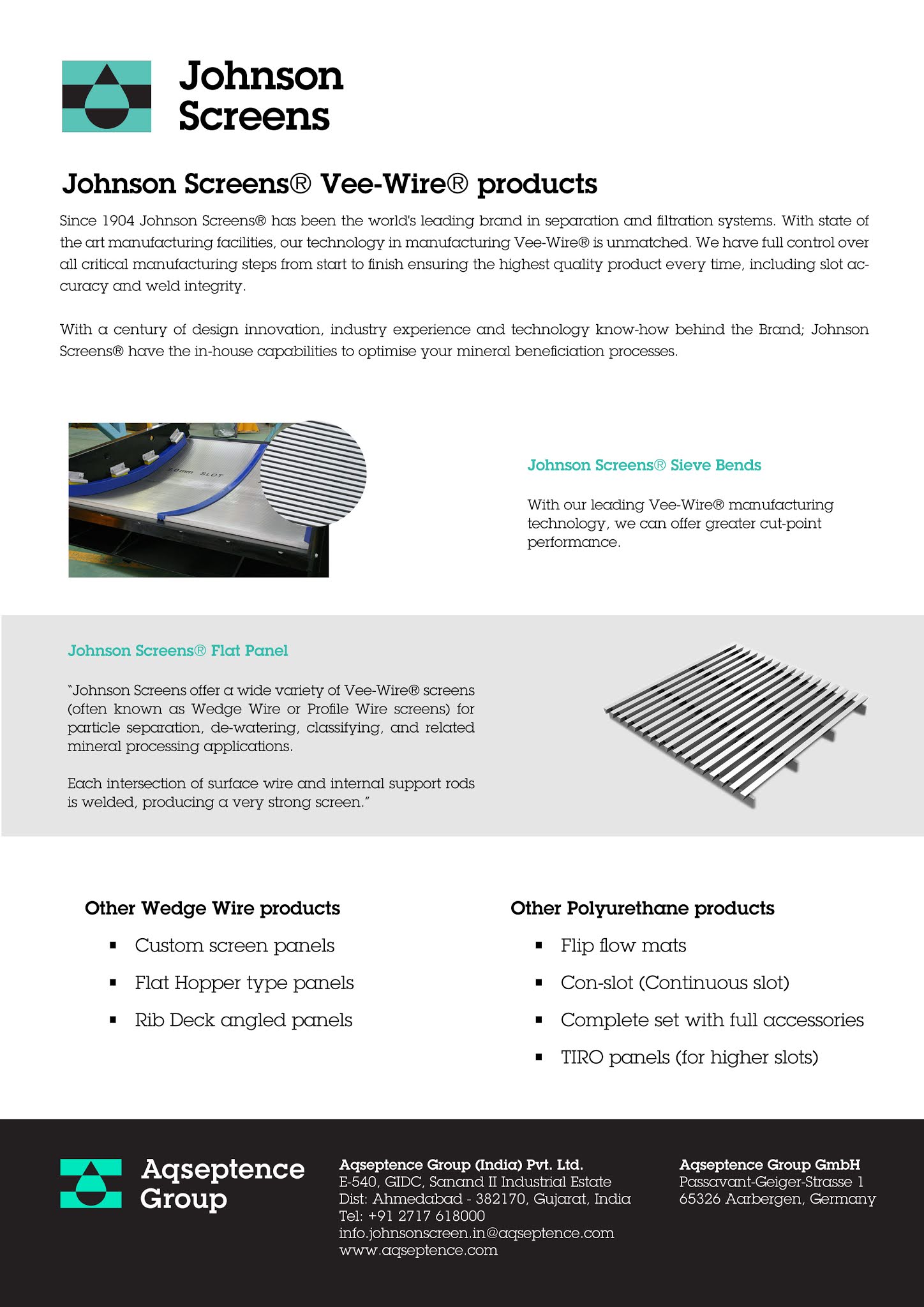 Johnson Screens Johnson screens is a leading manufacturer of stainless steel and pvc well screens for water well, environmental, and oil. Aqseptence group is a global leader in filtration and separation solutions for various applications. Johnson screens offers stainless steel and pvc well screens for water well, environmental, and oil and gas applications. It offers screening technology systems for wastewater treatment, sludge. Johnson Screens.