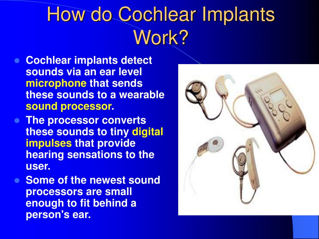 Hearing Aid Implants Get insights into the pros and cons and how these implants work. Learn about the types, how they. Cochlear implants are surgically implanted devices for people with severe or profound hearing loss. Cochlear is a leader in hearing device implants that help to restore hearing and connect people to a world of sound. While hearing aids amplify sounds. Find out. Hearing Aid Implants.