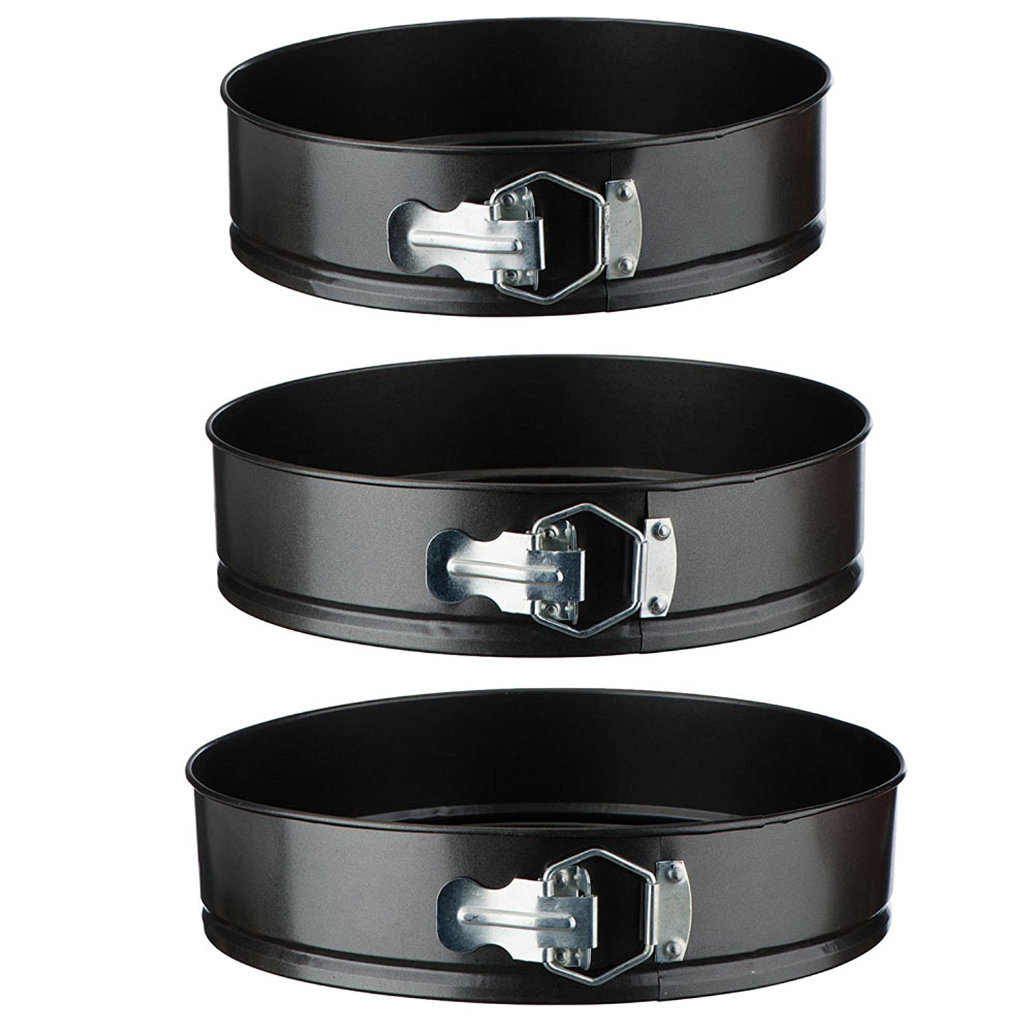 Set of Three Springform Cake Mould Baking Pans Cake pan set, Baking Springform Cake Pan 3 Piece Love baking cakes, but hate trying to get a seamless removal from the pan? Best of all, this springform pan set features a nonstick coating, so treats are easy to remove and the pans are easy to clean. Springform Cake Pan 3 Piece.