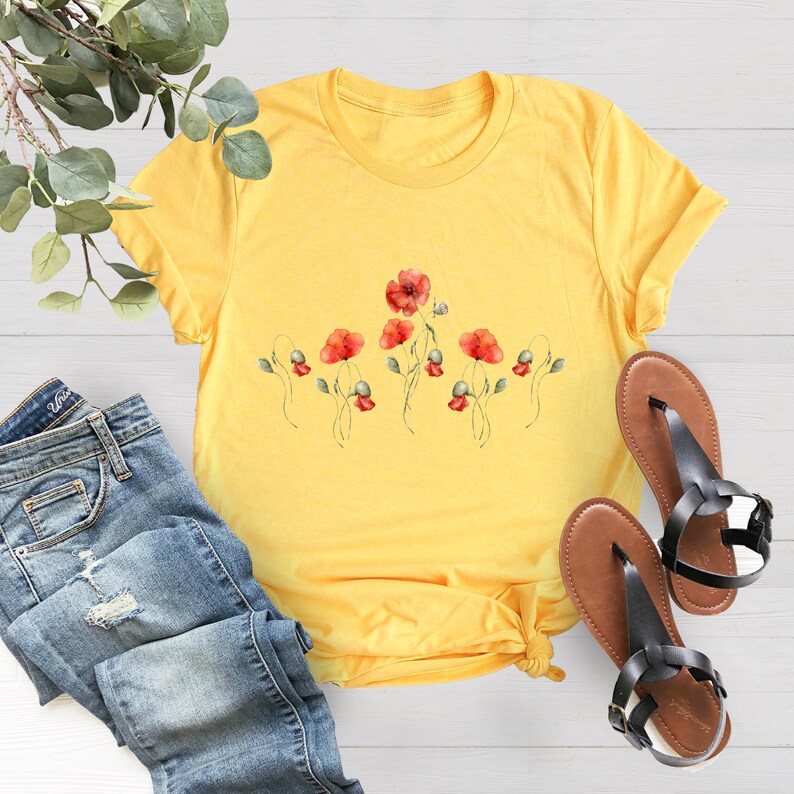 Watercolor Poppy Flowers Shirt Spring Shirt Botanical Shirt Etsy