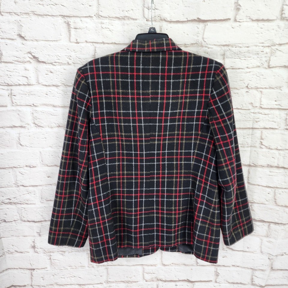 Vintage Sag Harbor Plaid Blazer Women 12 Wool Red Black Dark Academia