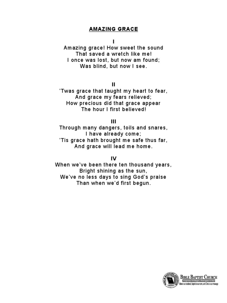 Funeral Songs PDF Amazing Grace Thou