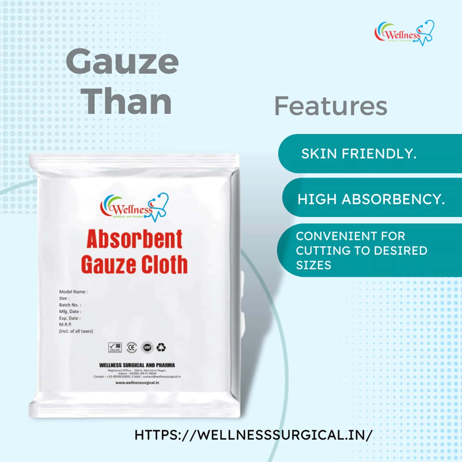 Buy WELLNESS SURGICAL ABSORBENT GAUZE THAN 90 CM * 18 MTS Online & Get