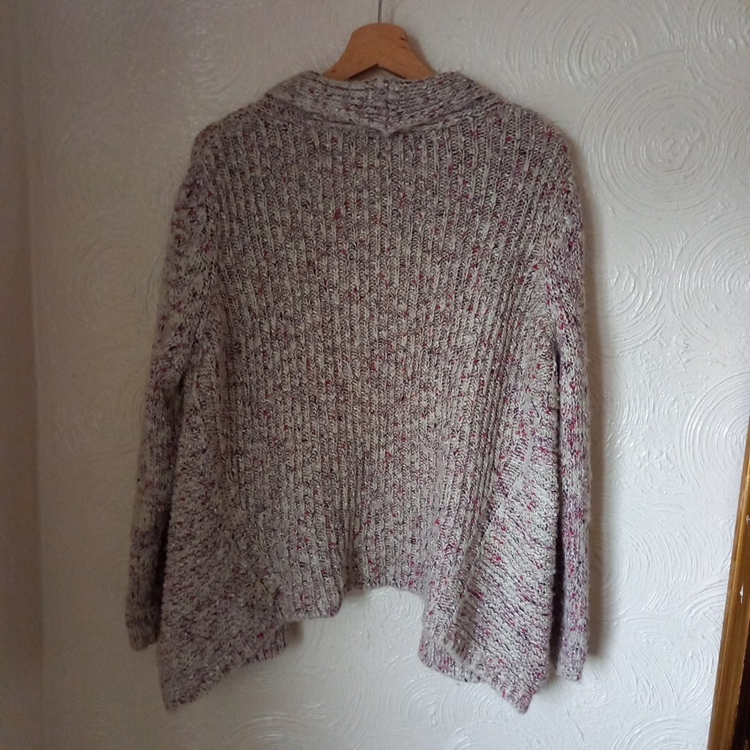 M&S Shawl Collar Chunky Knit Open Cardigan Sweater UK 16 Pink Mix eBay