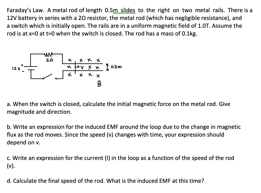 Solved Faraday's Law. A metal rod of length 0.5 m slides to