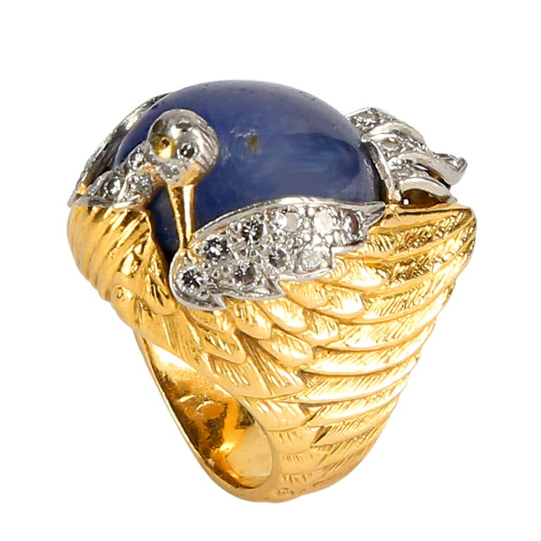 Unique Sapphire Diamond Gold Phoenix Dress Ring at 1stdibs