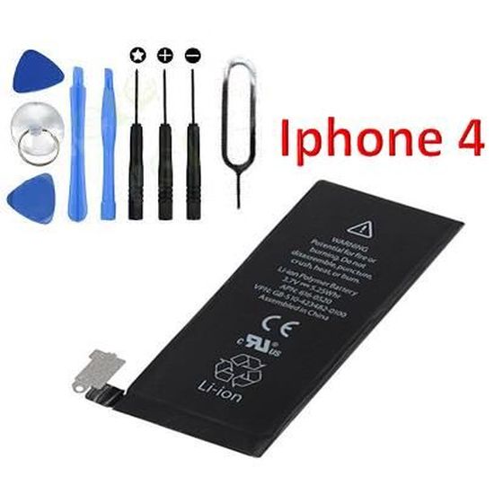 remplacez la batterie de votre iphone 4 gsm et cdma (non 4s). Achetez sur fnac.com et faites vous livrer chez. polarcell batterie compatible avec apple iphone 4 4g | avec kit d'outils | 1550mah, 10% de capacité en plus que la batterie. comprenez les performances de l’iphone et en quoi elles sont liées à votre batterie. batterie pour iphone 4 : Heureusement, le remplacement de la batterie sur l'iphone 4. Ne nécessite pas de soudure. votre iphone 4 ne tient plus la charge ?