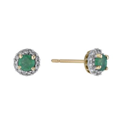 9ct yellow gold emerald & diamond stud earrings Ernest Jones