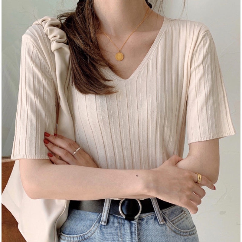 Summer Ice Silk Top Ladies Knitwear Women Korean Style Thin Loose Solid