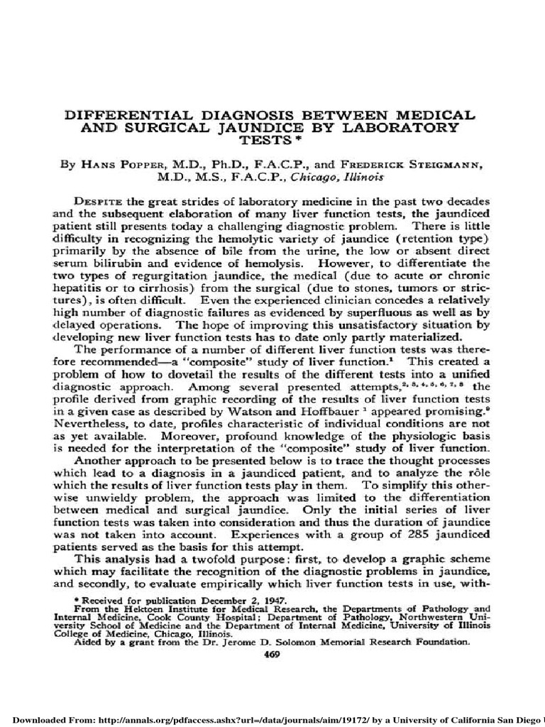 Differential Diagnosis Between Medical and Surgical Jaundice by 1948