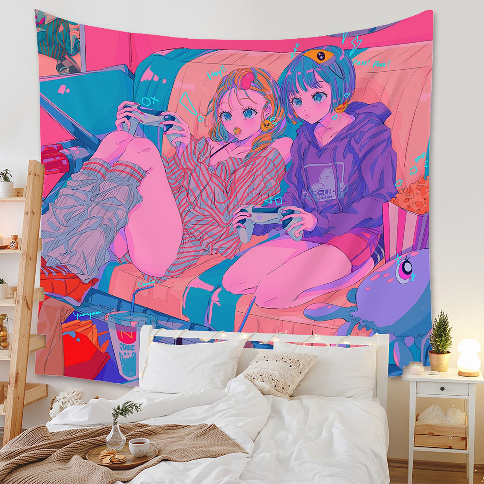 Game girls tapestry trippyanime tapestryCyberpunk tapestry Etsy